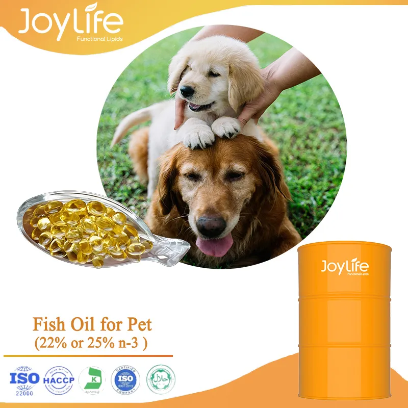 Joylife Nutripharma Inc's premium feed-grade fish oil with 22% or 25%Omega-3 is specially formulated for companion animals and livestock, derived from fresh, wild-caught, cold-water fish to deliver a concentrated source of essential Omega-3 fatty acids, including EPA and DHA. Produced through a gentle refining process without harsh chemicals, it retains maximum nutritional integrity while meeting strict safety standards for heavy metals, dioxins, and other environmental contaminants. Specifically designed to support skin and coat health, reduce inflammatory responses, promote cognitive development in growing animals, and maintain cardiovascular and joint function throughout all life stages.